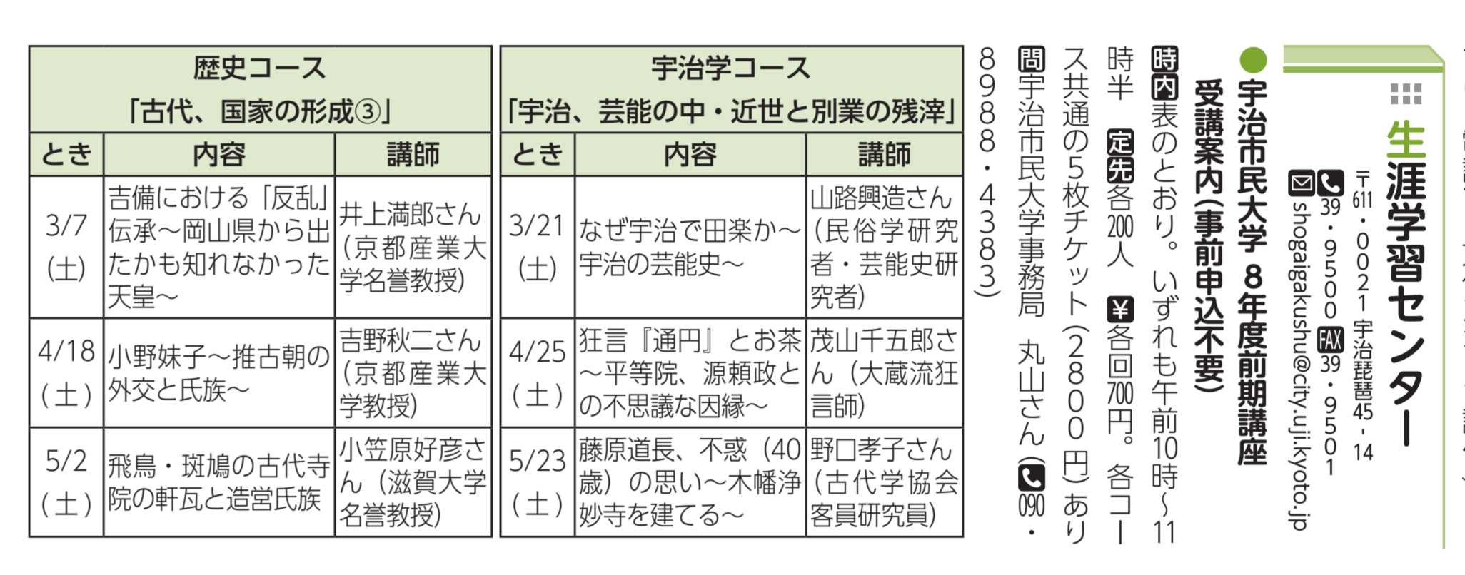 4月から始まる 宇治田楽まつり参加者募集などについて